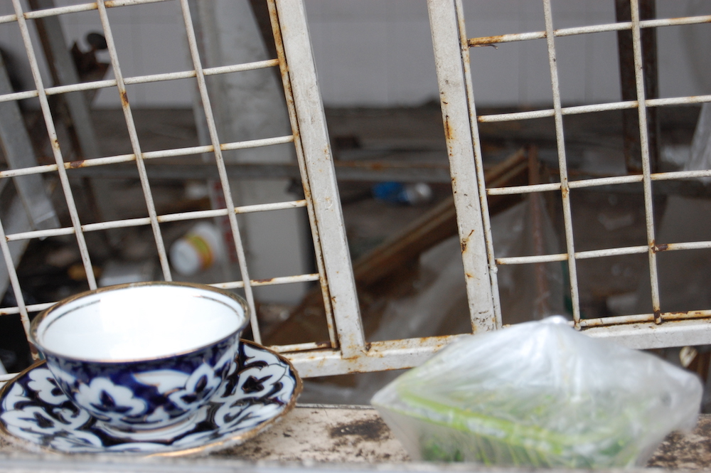 (…) Next up was “Cherkisov Revisited,” a performance-installation, if I may put it that way, conceived by Felix Meyer-Christian, Eylien Konig, Karolina Mazur and Alexei Kukarin. This was ostensibly an exploration of the effect that the controversial closing of the Cherkizovsky open-air market had on those who had worked there, although nothing so obvious and concrete emerged from the performance we witnessed. It included documentary texts drawn from interviews with a former market worker, and excepts from the writings of Chingiz Aitmatov.